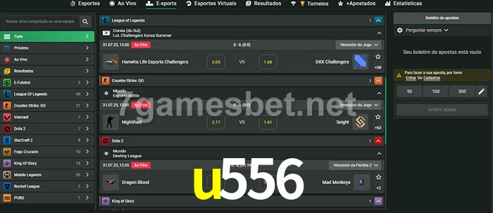 O u556 oferece uma grande seleção de opções de apostas em e-sports com probabilidades competitivas